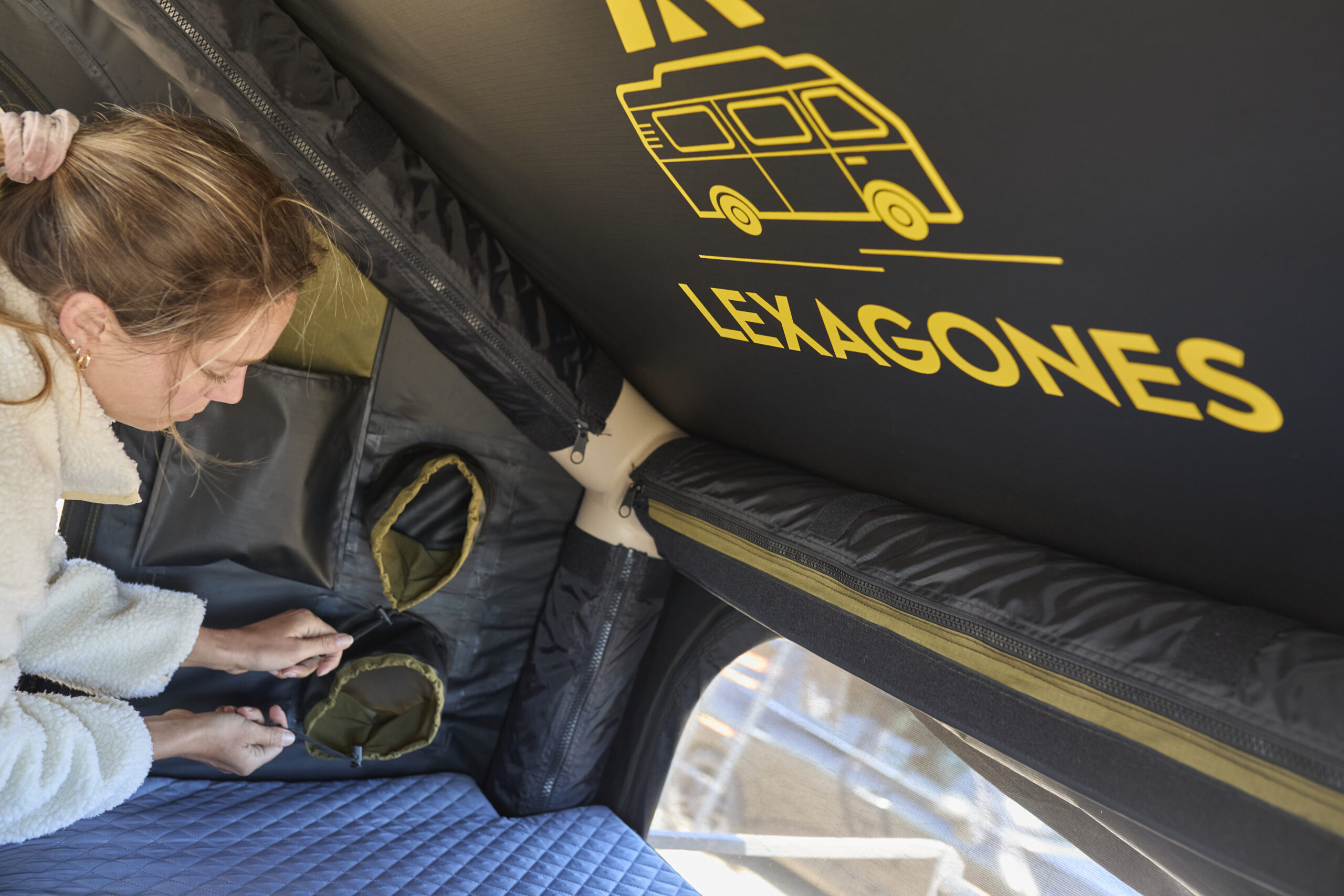 – Espace Confortable : Avec une surface de couchage spacieuse, la Traveller peut accueillir jusqu’à deux adultes et un enfant. L’intérieur est équipé d’un matelas confortable en mousse à mémoire de forme et d’un matelas anti condensation pour une ventilation optimale pour des nuits reposantes sous les étoiles.